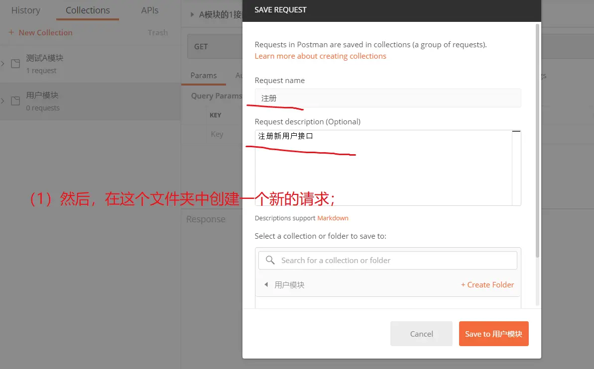 (0)在postman创建文件夹和测试用的请求;