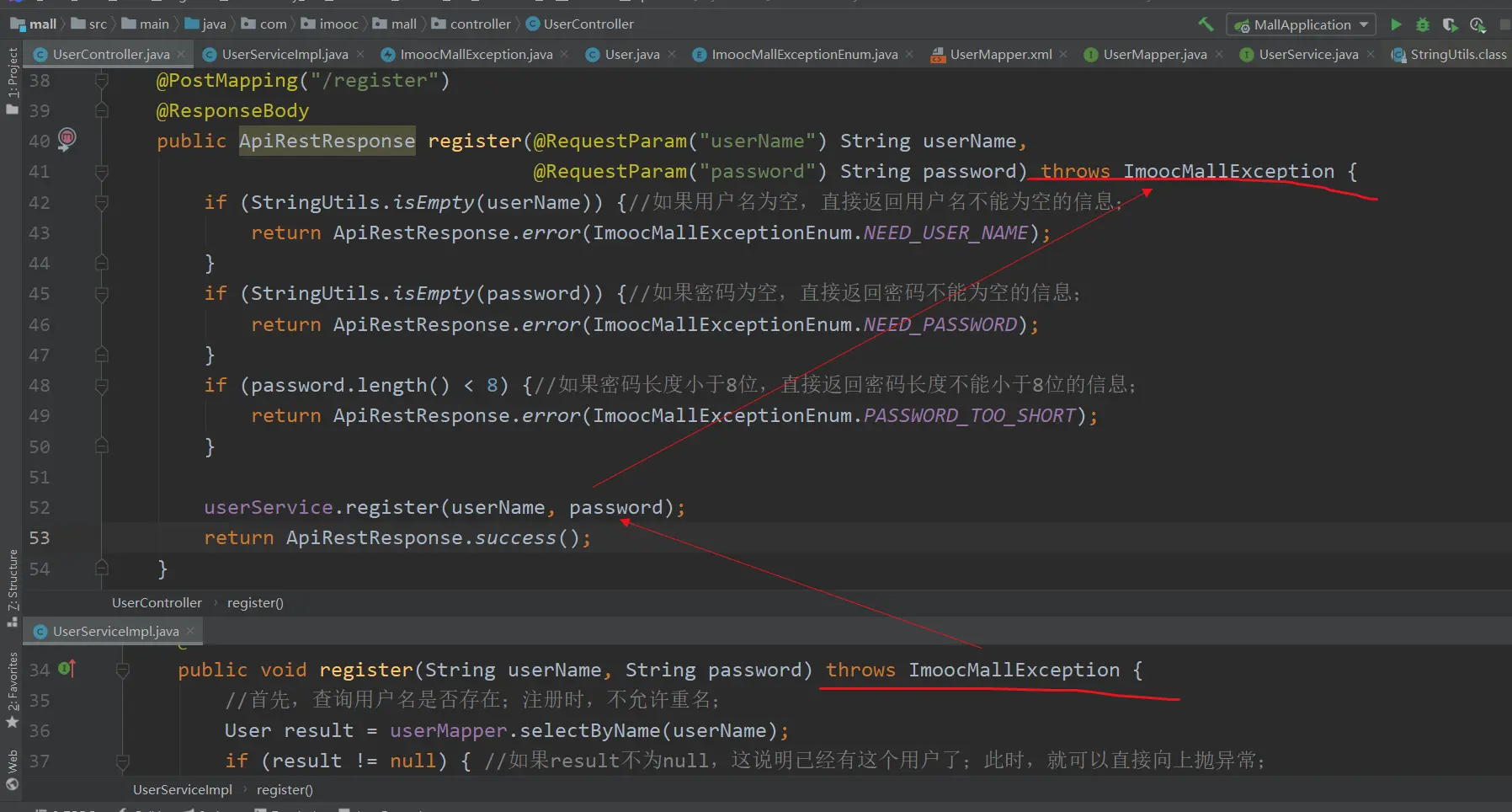 public void register(String userName, String password) throws ImoocMallException {