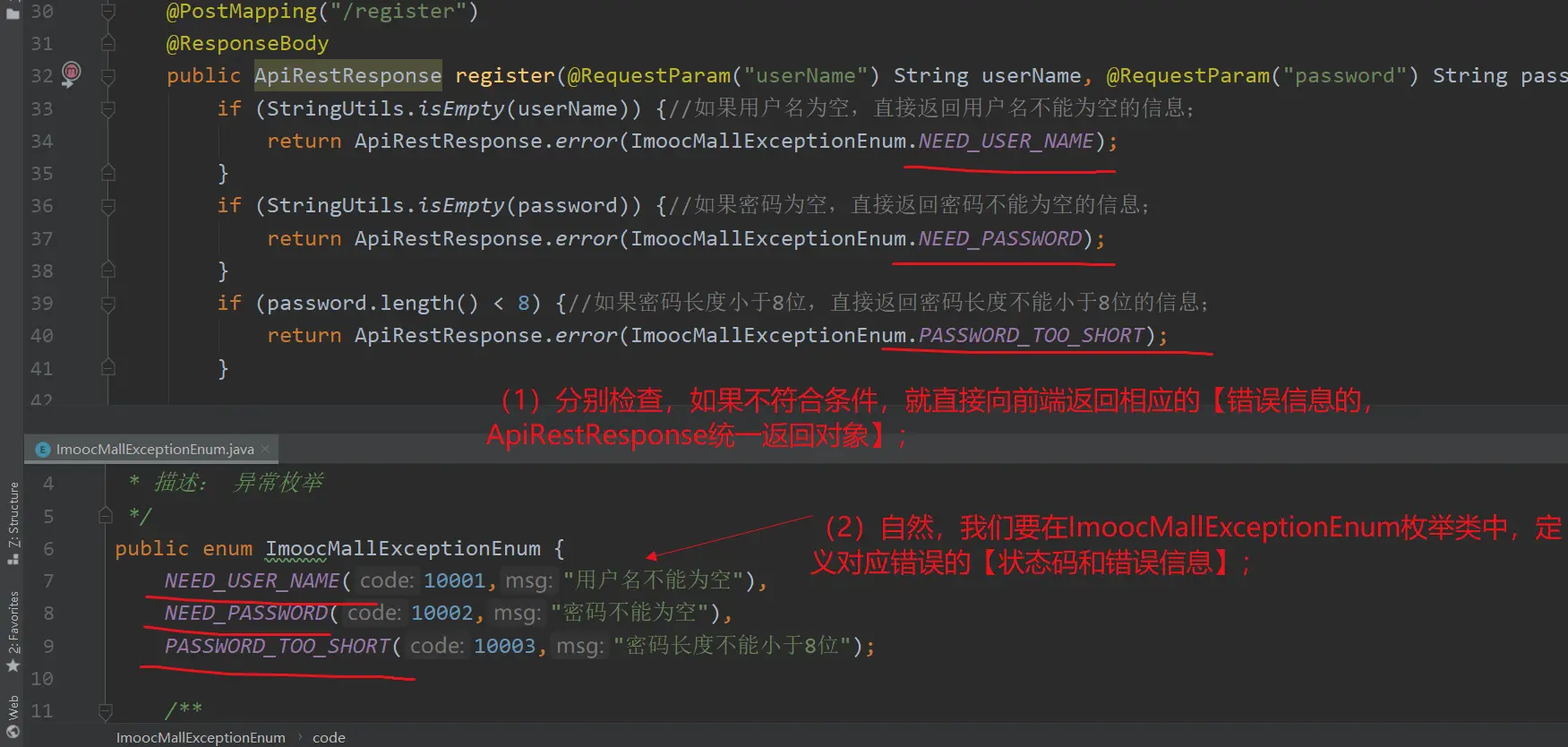 return ApiRestResponse.error(ImoocMallExceptionEnum.PASSWORD_TOO_SHORT);