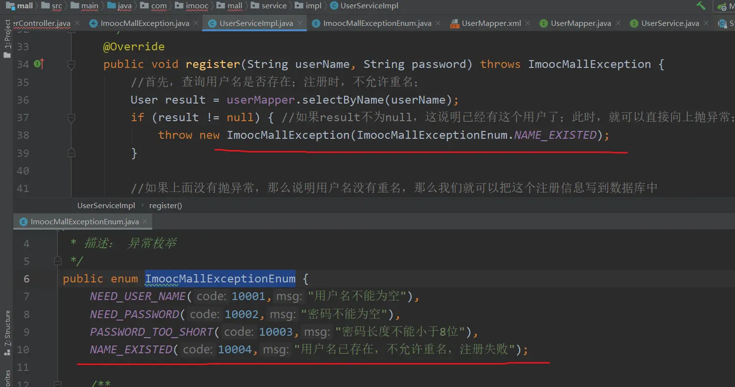 throw new ImoocMallException(ImoocMallExceptionEnum.NAME_EXISTED);
