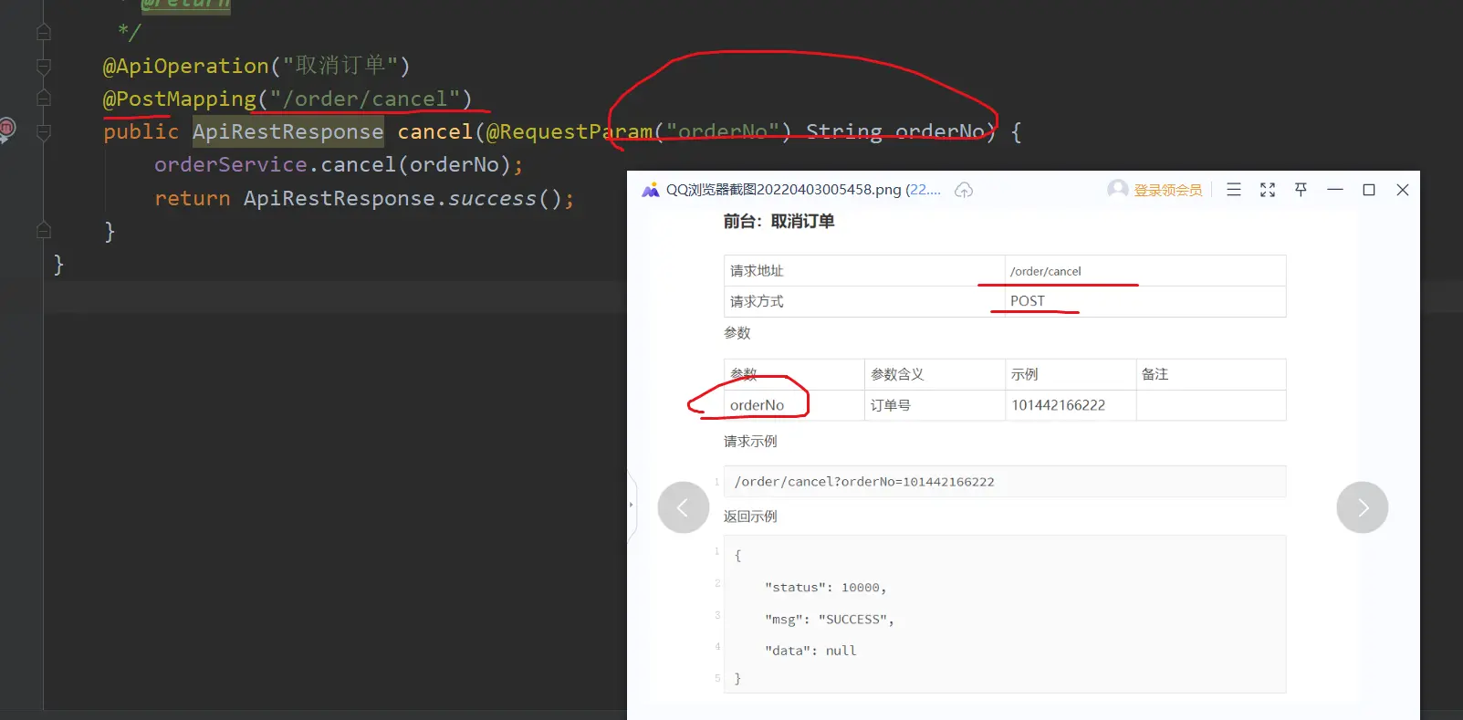 (2) 这个接口比较简单,只是别忘了,我们在实际取消前,需要订单检查与权限校验;