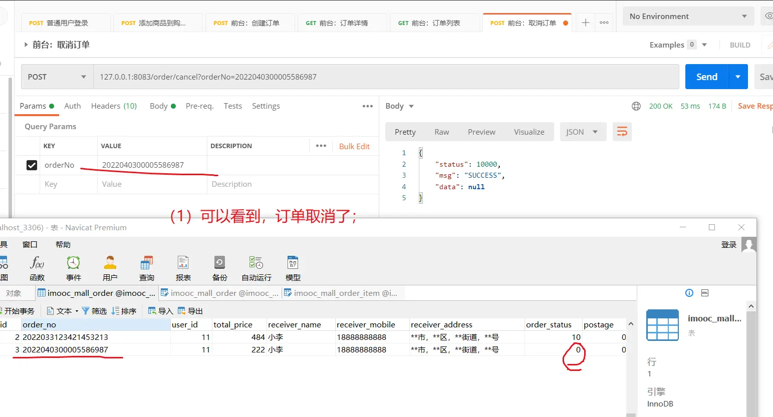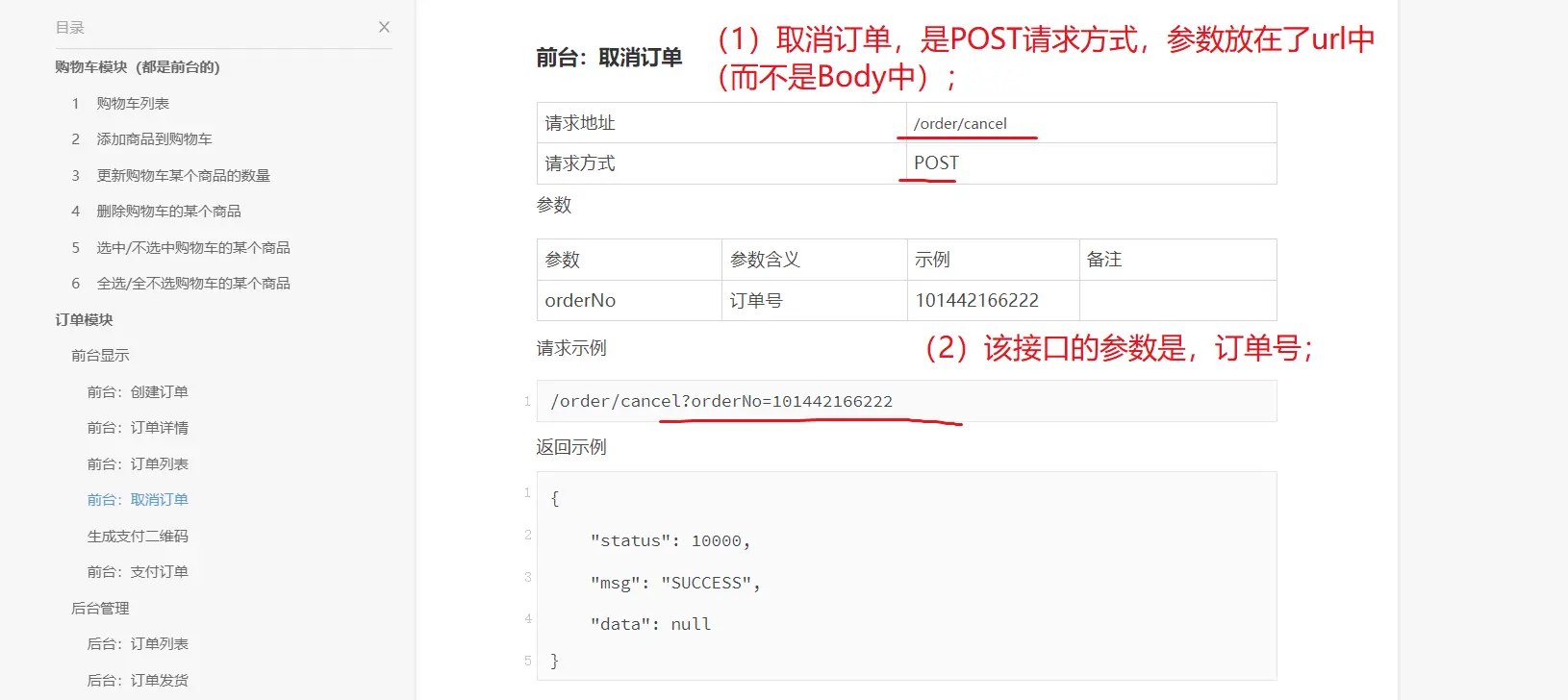 (1) 本篇博客主要内容:开发【前台:取消订单】接口;