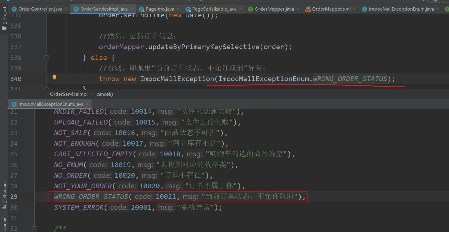 throw new ImoocMallException(ImoocMallExceptionEnum.WRONG_ORDER_STATUS);