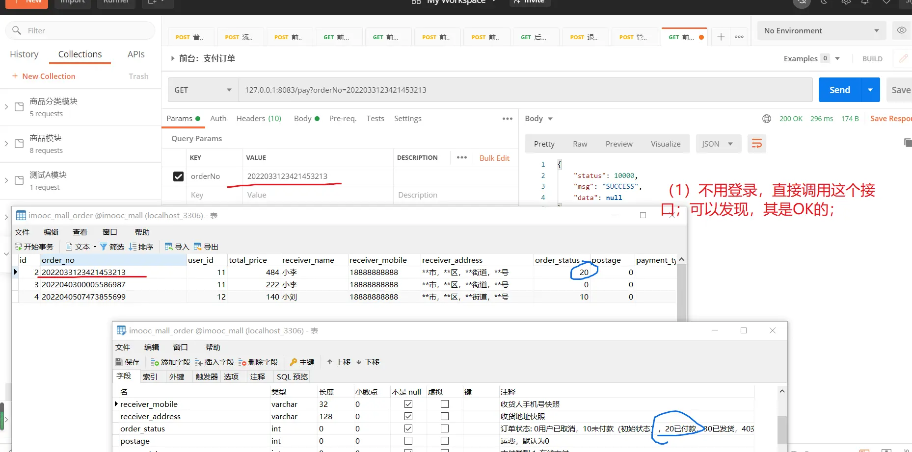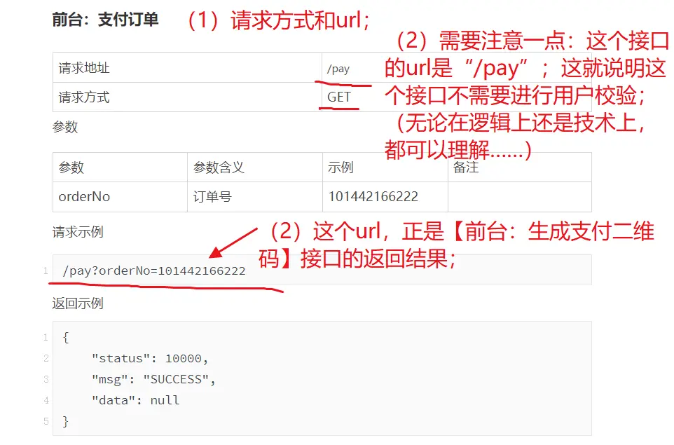 ● 支付接口不需要登录,这仅仅是在本项目的中,是这样规定的;其实,稍微思考一下也可以理解,比如,我在淘宝上下单后,可以把付款码发给我姐让她帮我支付;但需要明确的是,不排除有的项目、有的具体业务,需要登录校验(也就是,需要有权限才能够支付);