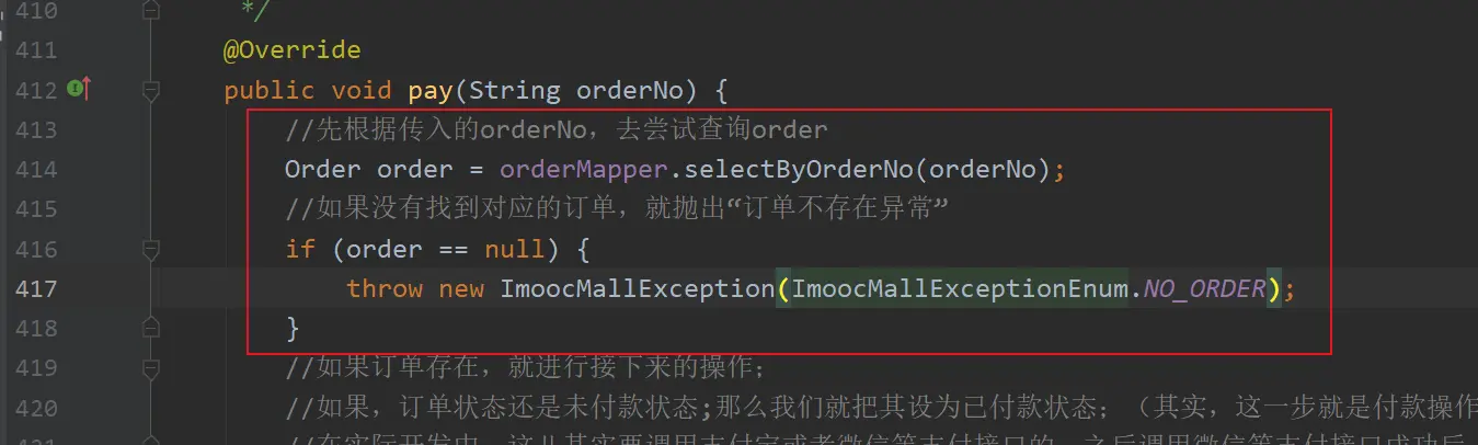 throw new ImoocMallException(ImoocMallExceptionEnum.NO_ORDER);