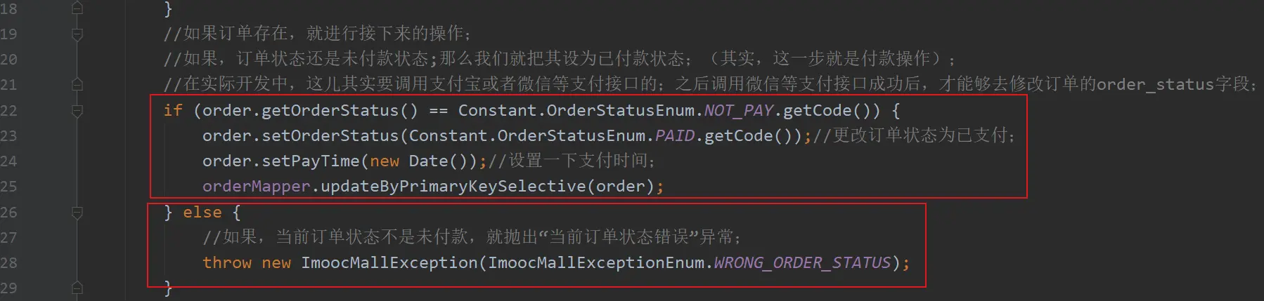 ● 如果该订单不是未支付状态,就抛出对应的异常;