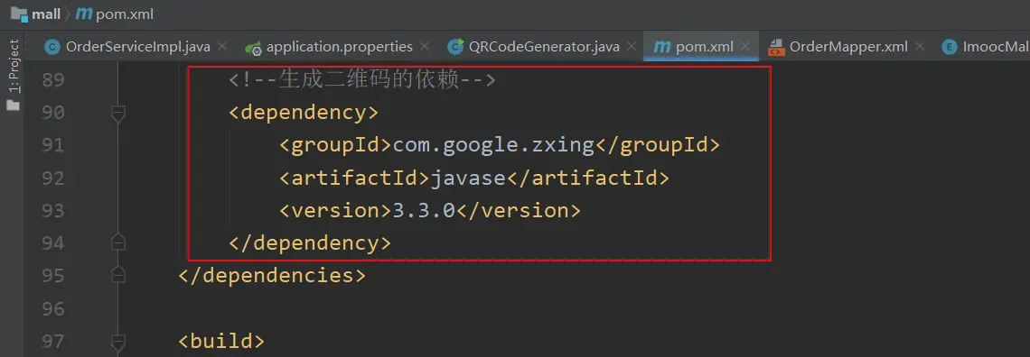(1)首先,我们需要引入商生成二维码的依赖:zxing;