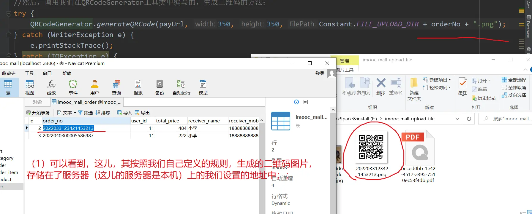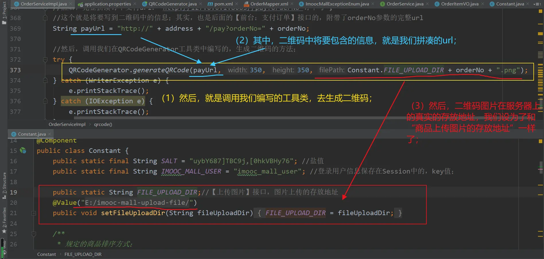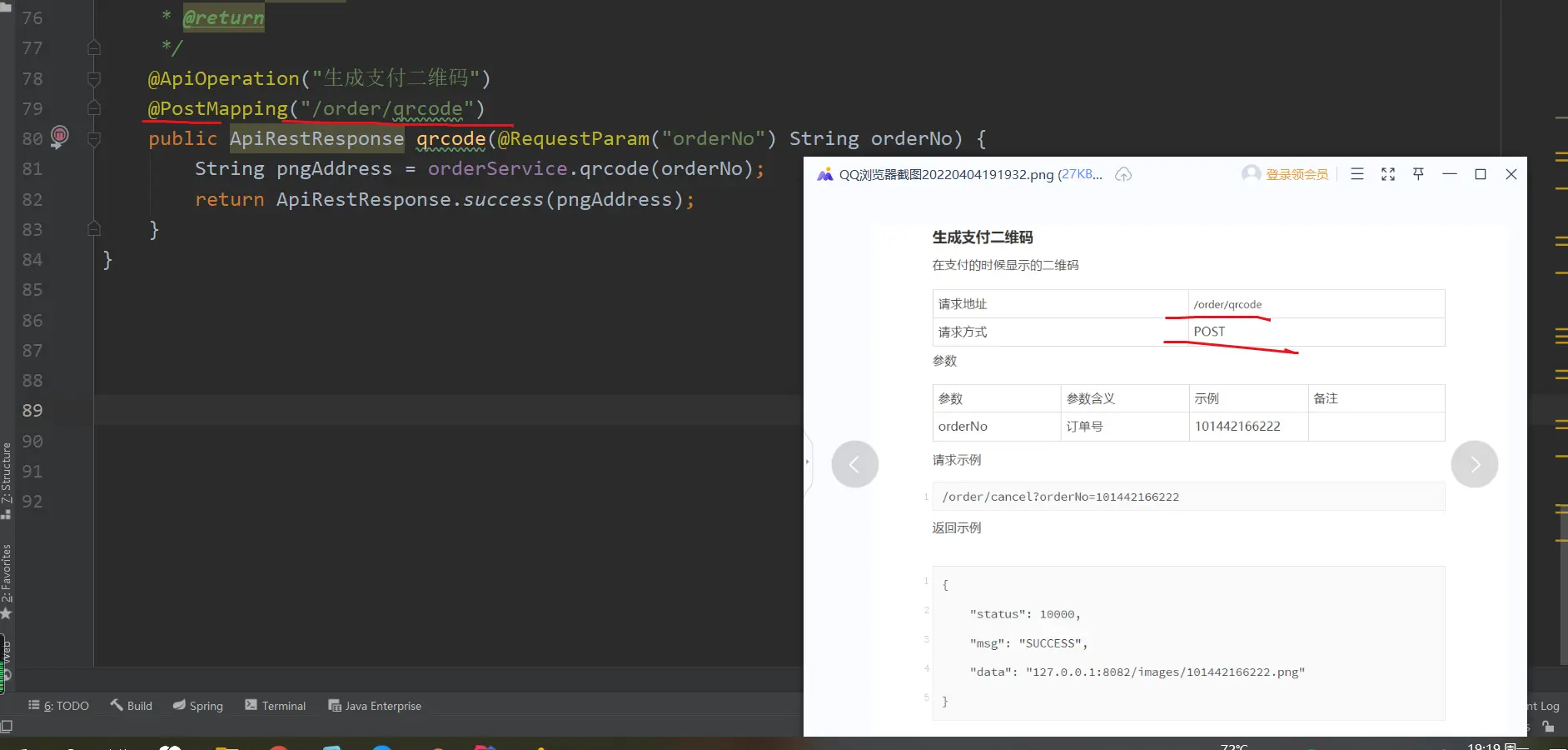 ●【前台:生成支付二维码】接口,是生成一个二维码图片;具体,就是返回二维码图片的可访问地址,前端拿到这个地址后,就可以在页面上显示二维码图片了;