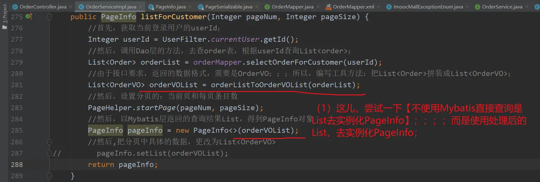 ● 但是,就自己来说,在实际操作的时候,如果情况OK并合适(比如,List<Order>和List<OrderVO>,仅仅存在结构上的差别,元素数量等没有改变的话),最好按照本篇博客的做法:【先利用直接通过Mybatis查询出来的List,去实例化PageInfo】→【然后,在把PageInfo的list,设置为我们处理后的List】;(其实,这种方式,有点点怪怪的……)