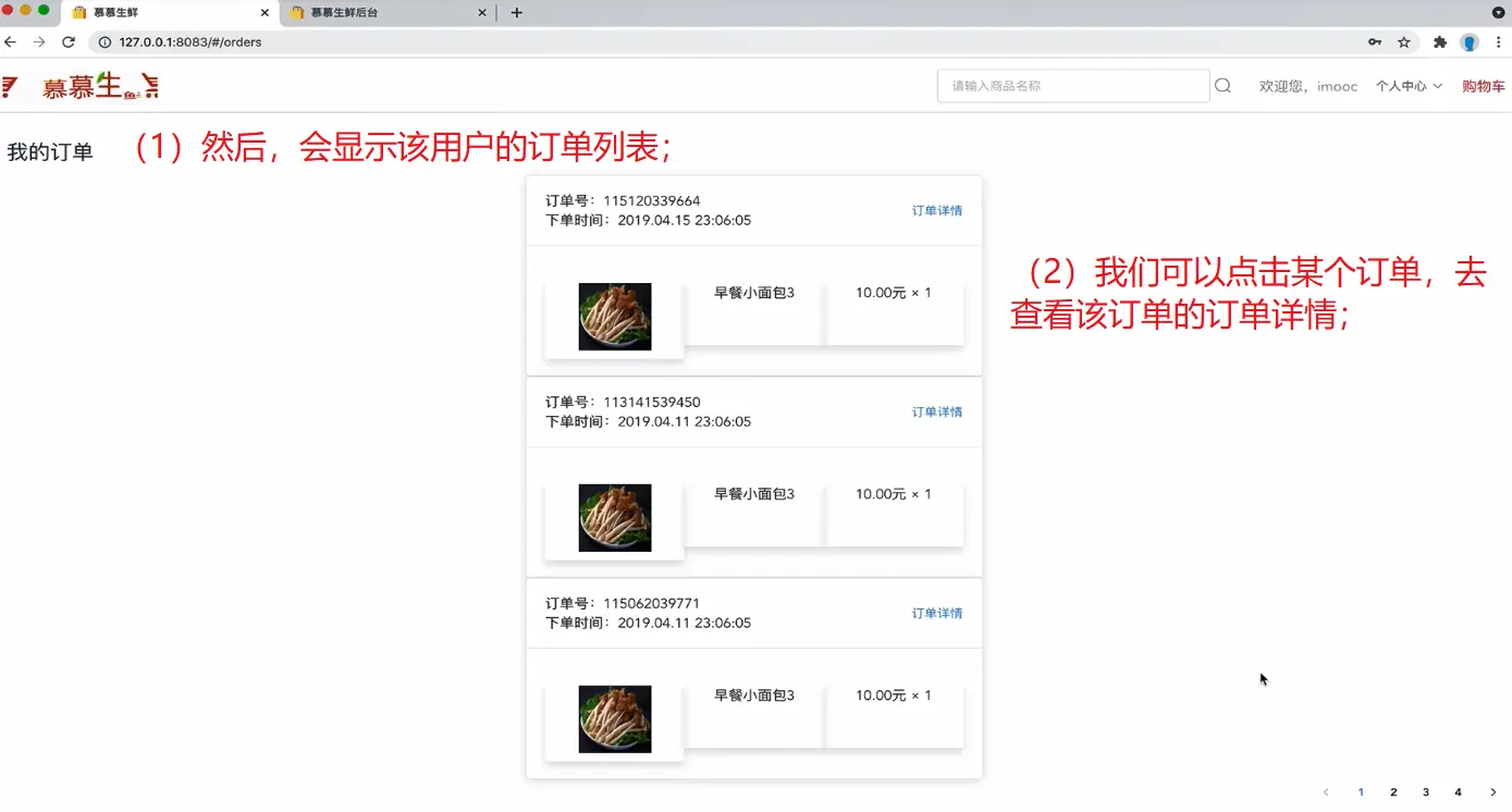 (1) 本篇博客主要内容:开发【前台:订单列表】接口;