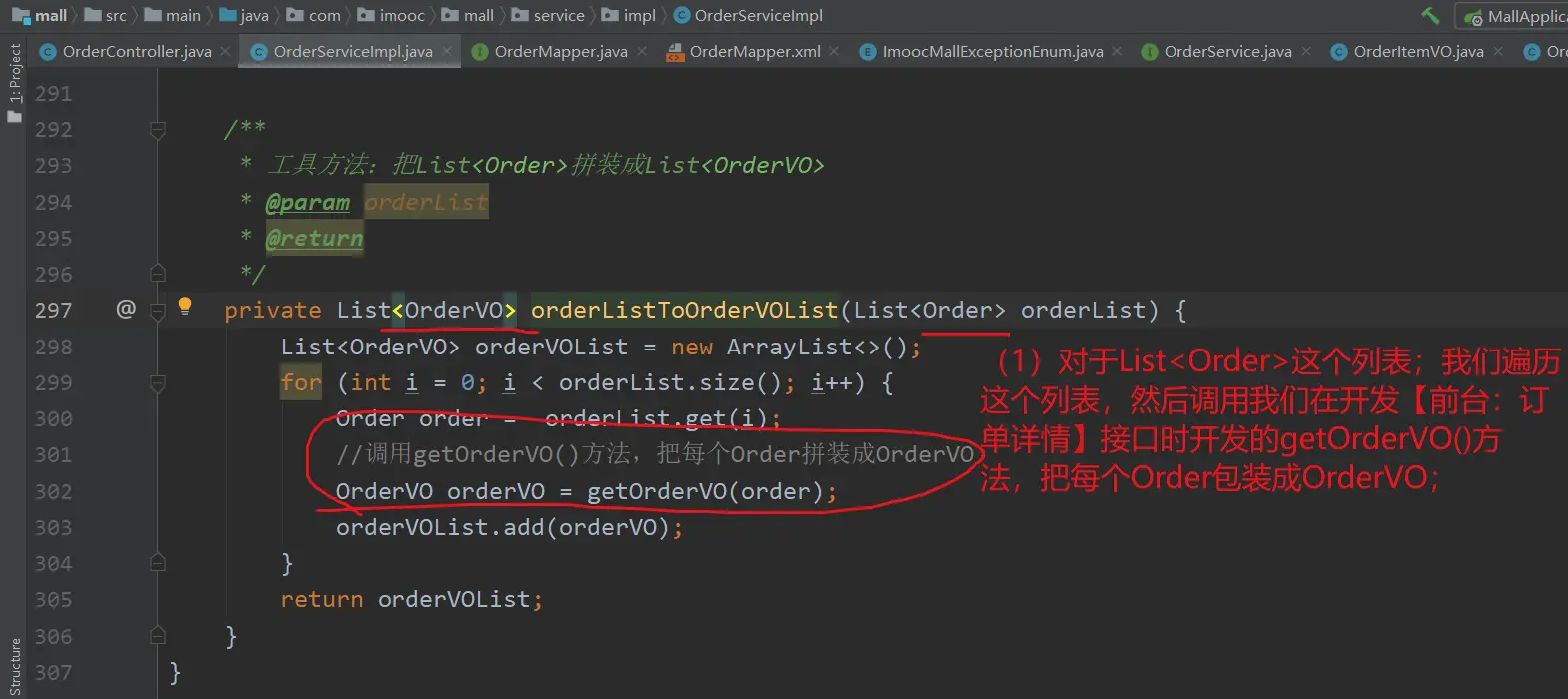 (2) 然后,编写一个工具方法:按照接口要求,把List<Order>包装成List<OrderVO>;