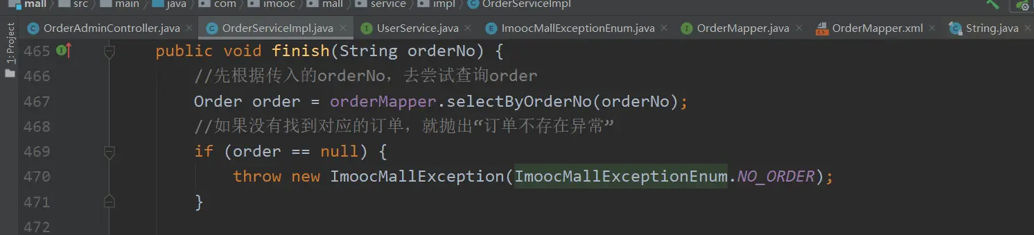 throw new ImoocMallException(ImoocMallExceptionEnum.NO_ORDER);