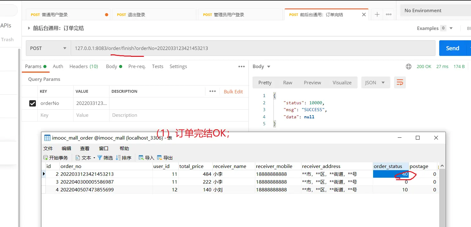2.【前后台通用:订单完结】接口,在界面上的表现;