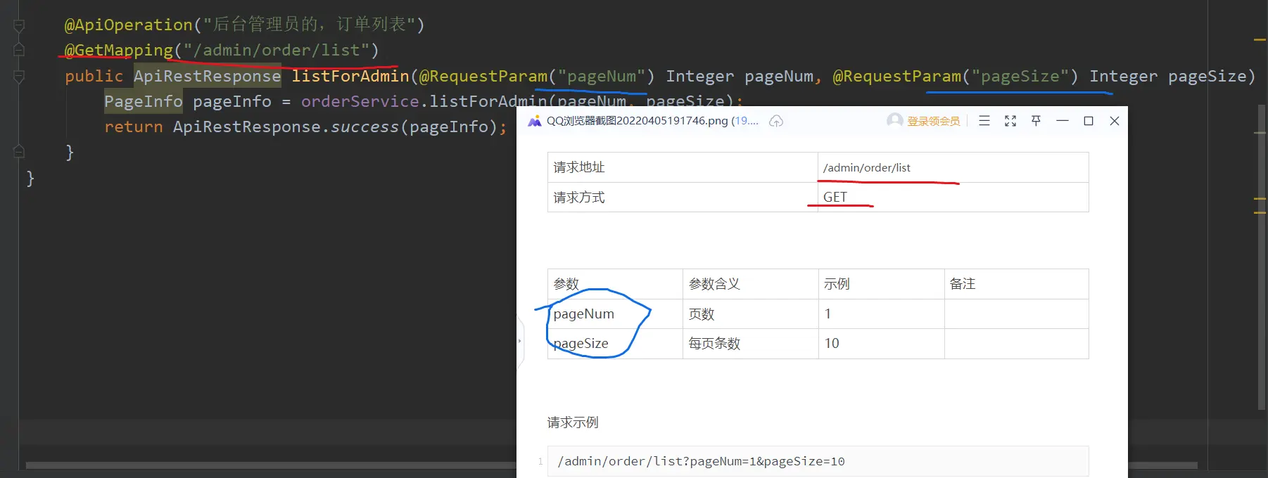 1.【后台:订单列表】接口,接口文档;