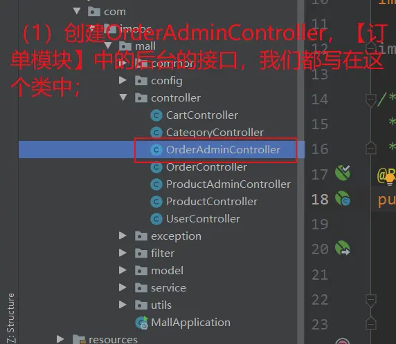 1.创建OrderAdminController,并在其中创建处理【后台:订单列表】接口的方法:listForAdmin()方法;