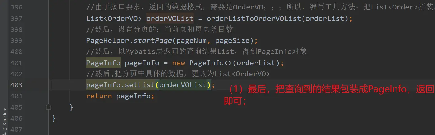 (2) 这儿,我们把【查询order表,得到的List<Order>】,转换为了【接口要求的,List<OrderVO>】;有关orderListTOOrderVOList()方法,如有需要可以参考【SpringBoot电商项目订单模块前台订单列表接口】;