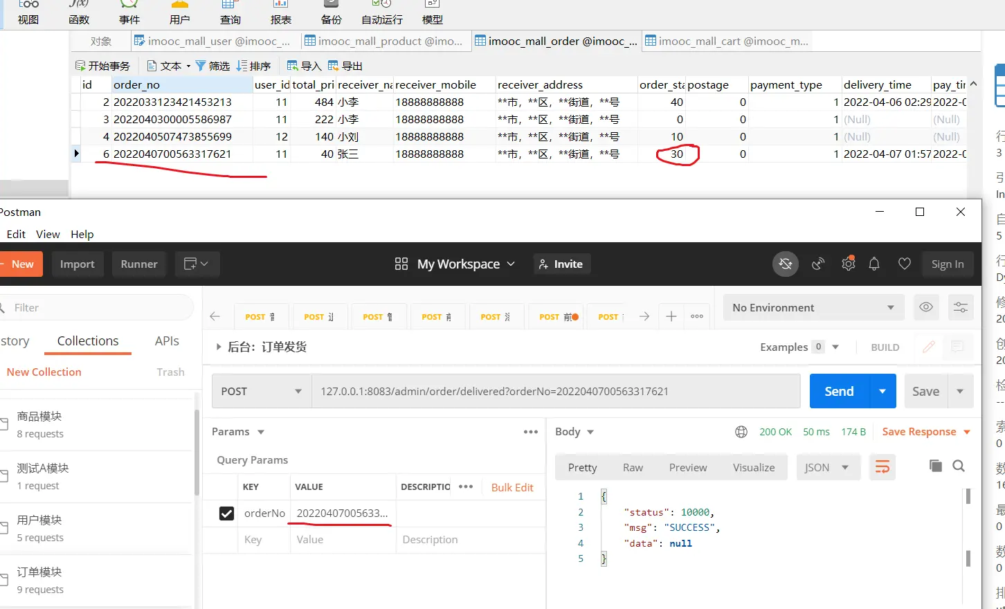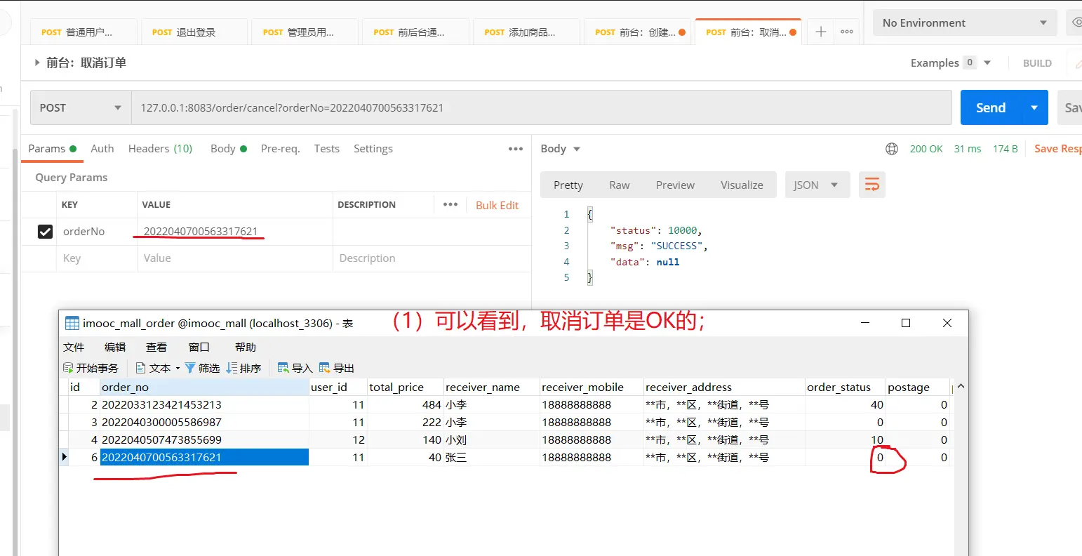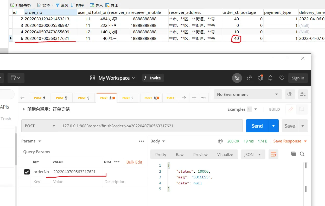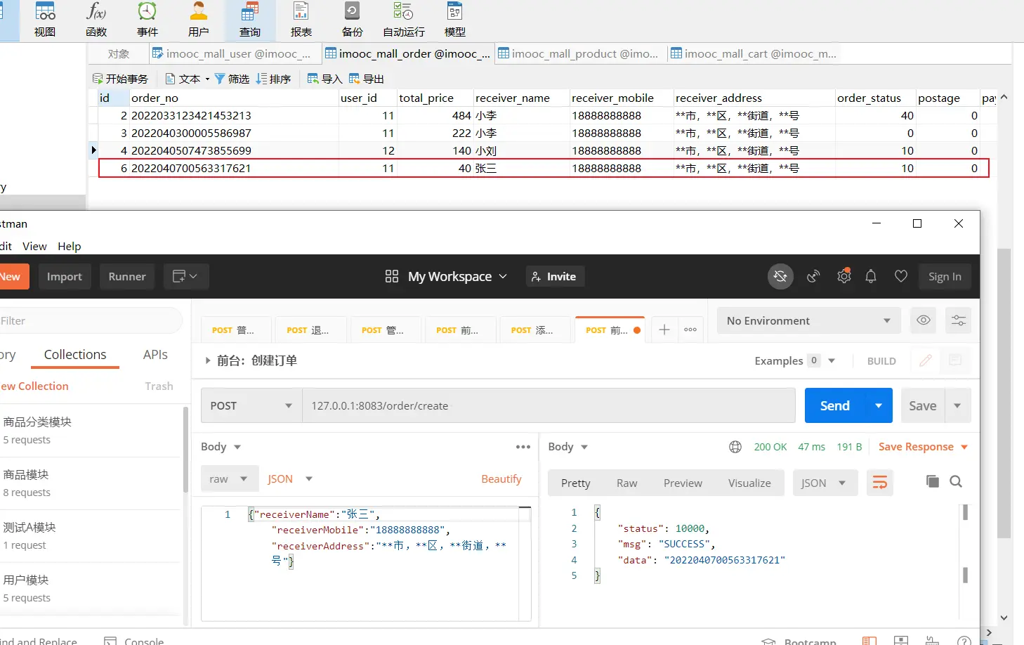 2.【订单模块】全流程测试;(PS:下面的测试过程,可以不看)