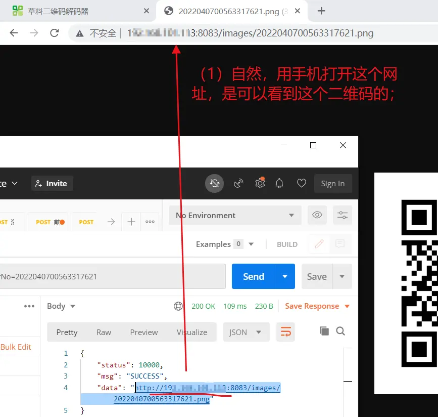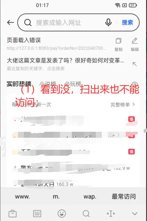 ● 这儿我们没有用手机扫码;因为这个网址是127.0.0.1,对应的是【本机】;手机扫出来后,手机就会去本手机上去访问这个地址,显然在手机上是没有“/pay?order=…”这个接口的;自然,是不能访问的;