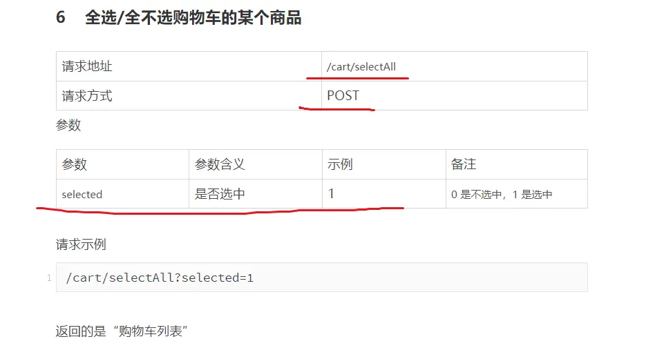 1.【全选/全不选购物车的商品】接口文档;