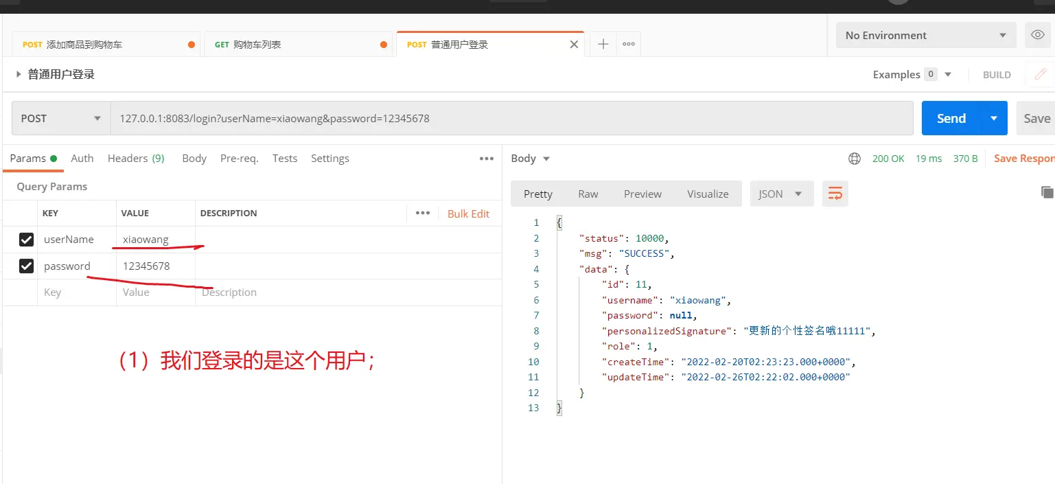 ● 这儿,我们默认购物车中的商品数量不多,而且就算购物车中的商品数量比较多,一次性返回购物车中的所有商品比分页获取购物车中的商品,体验也要好;所以,这儿请求购物车列表的时候,没有采用分页;自然,因为没有分页,所以这个接口也没有pageNum,pageSize这种参数;