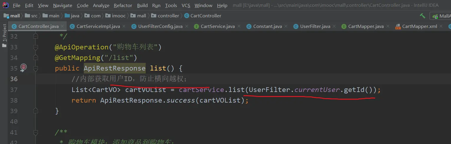 List<CartVO> cartVOList = cartService.list(UserFilter.currentUser.getId());