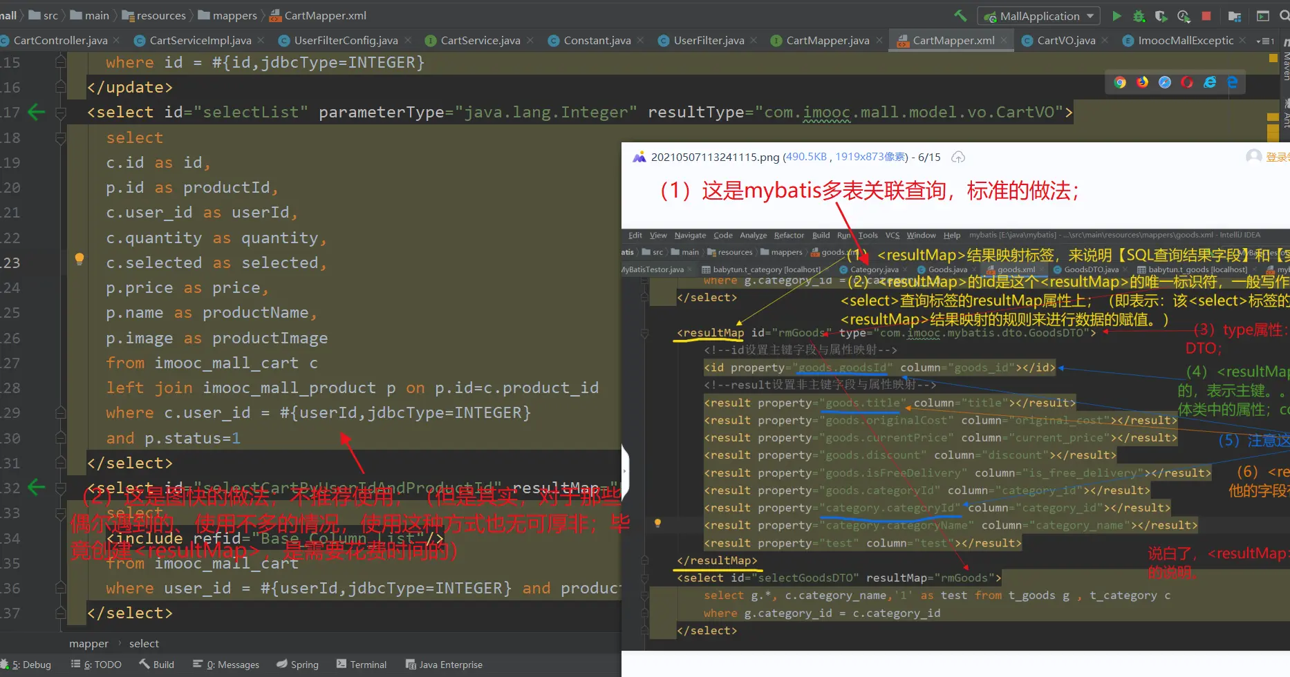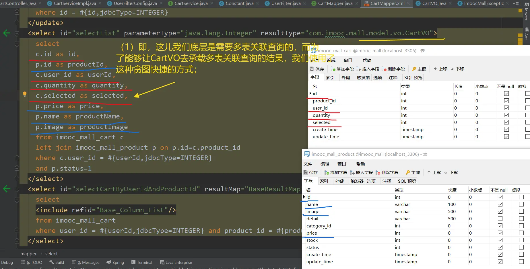 List<CartVO> selectList(@Param("userId") Integer userId);(2)在CartMapper.xml中编写实现SQL;(重点!!!)