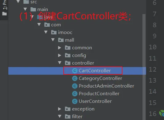 1.创建CartController类,并在CartController中,创建获取购物车列表的方法:list()方法;