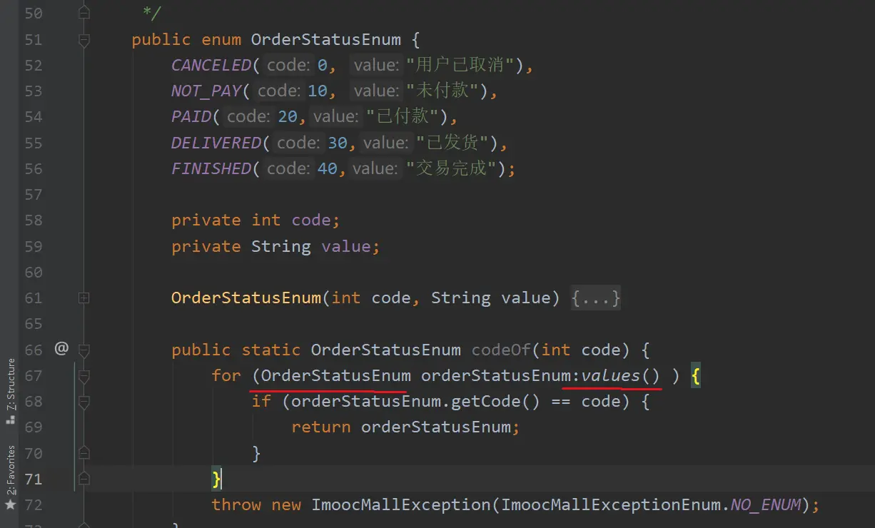 (3) 然后,在 【SpringBoot电商项目订单模块前台创建订单接口】中,我们也使用枚举类(虽然是内部类啦)来组织订单状态信息;