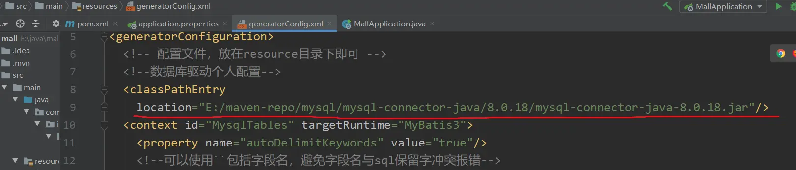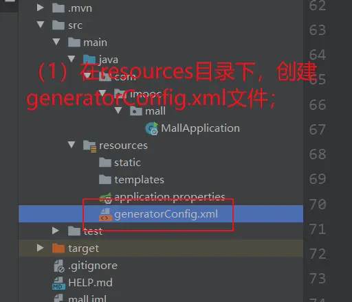 2.创建并配置【mybatis-generator】插件的配置文件:generatorConfig.xml文件;