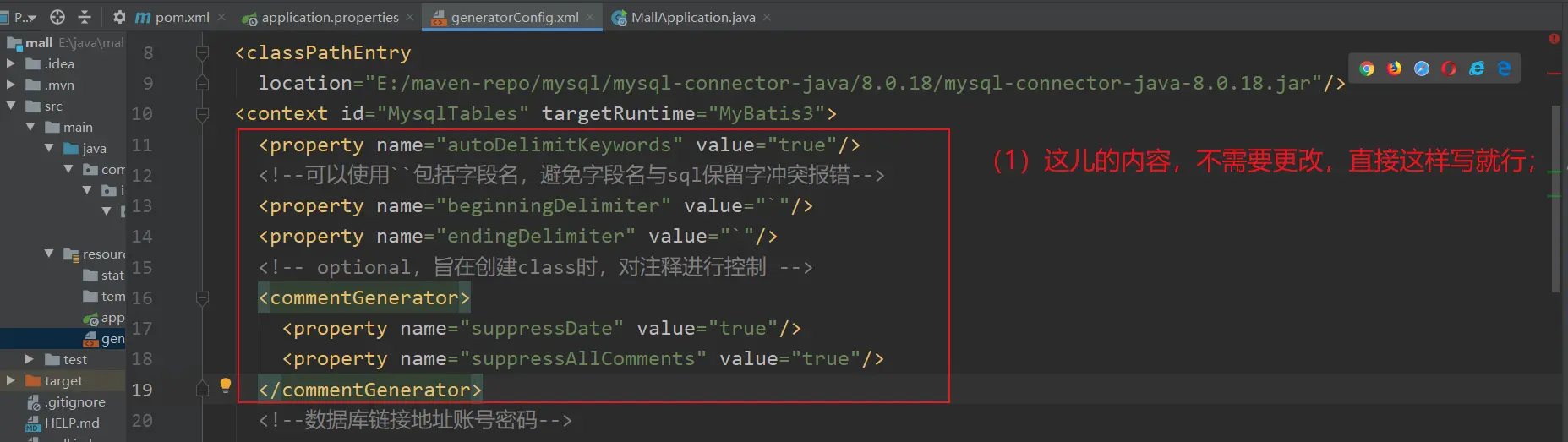 (1) 引入mybatis-generator插件的内容,不需要记忆,需要的时候,过来复制就行了;