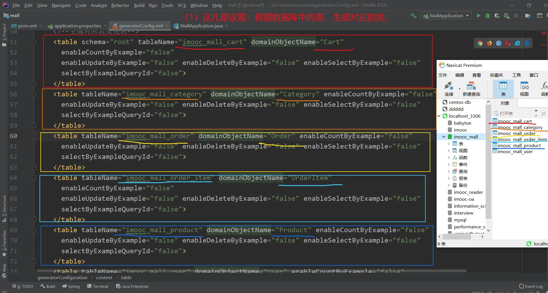<table tableName="imooc_mall_category" domainObjectName="Category" enableCountByExample="false"