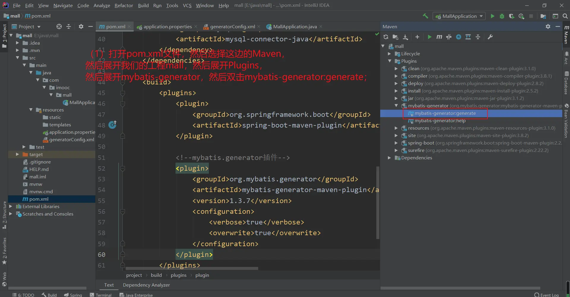 1.在pom.xml中,引入【mybatis-generator】插件;