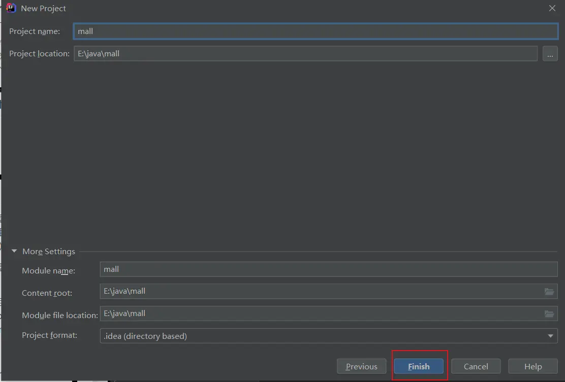 ● 创建Spring Boot电商项目的工程:【mall】;