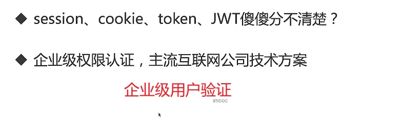 前面的我们使用的是ssession和 cookie 的方式对用户进行一个验证的。在本课中呢,我们将会使用 token 加Jwt 的方式对它进行一个升级,当然,在升级之前我们也会先讲点 token和Jwt的一个原理,它的一个优势以及劣势是什么?我们也会和它对于前面的这个session和 cookie 的这种技术方案呢?进行对比之后呢,我们就会在我们原有的项目基础上进行一个迭代升级了,我们看一看,如果我们之前写的是session和cookie 的验证方式,那么如何进行合理的迭代,把它升级。 token 和 Jwt 的方式,也是在主流的互联网公司中使用的比较普遍的,所以呢我们有必要对它进行掌握。