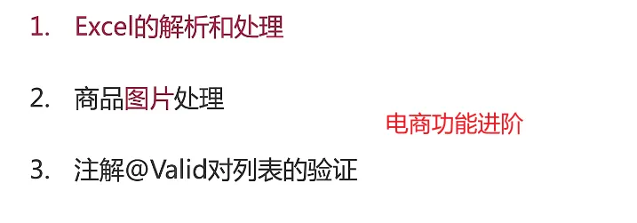 解析和处理 excel ,我们在课程中呢,会模拟出如何使用 excel 批量导入我们的商品。 我们还会对图片进行处理,前面的,我们是完成了图片的一个基本的上传,在这里我们会对图片进行一些额外的处理,比如说如何裁剪,如何旋转,如何打水印等等,同学们掌握了这个能力之后呢,未来对于图片的处理呢就不用担心了