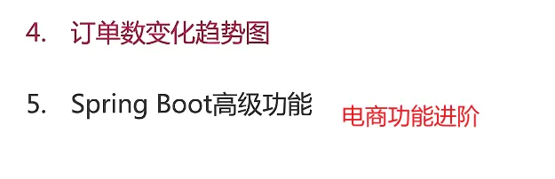 第三点,我们会对于Valid的这个注解如何应用到列表上? 我们还会去讲解订单数的变化趋势图应该如何开发?我们知道订单数是对于电商而言一个非常重要的指标,尤其的是这个变化趋势,比如说昨天比今天哎多了多少,那么运营的同学可以从中去分析出很多有用的信息呢,在此基础上去进行各种活动的运营 最后我们还会去介绍一些Springboot的高级功能,以便让我们的开发更加高效