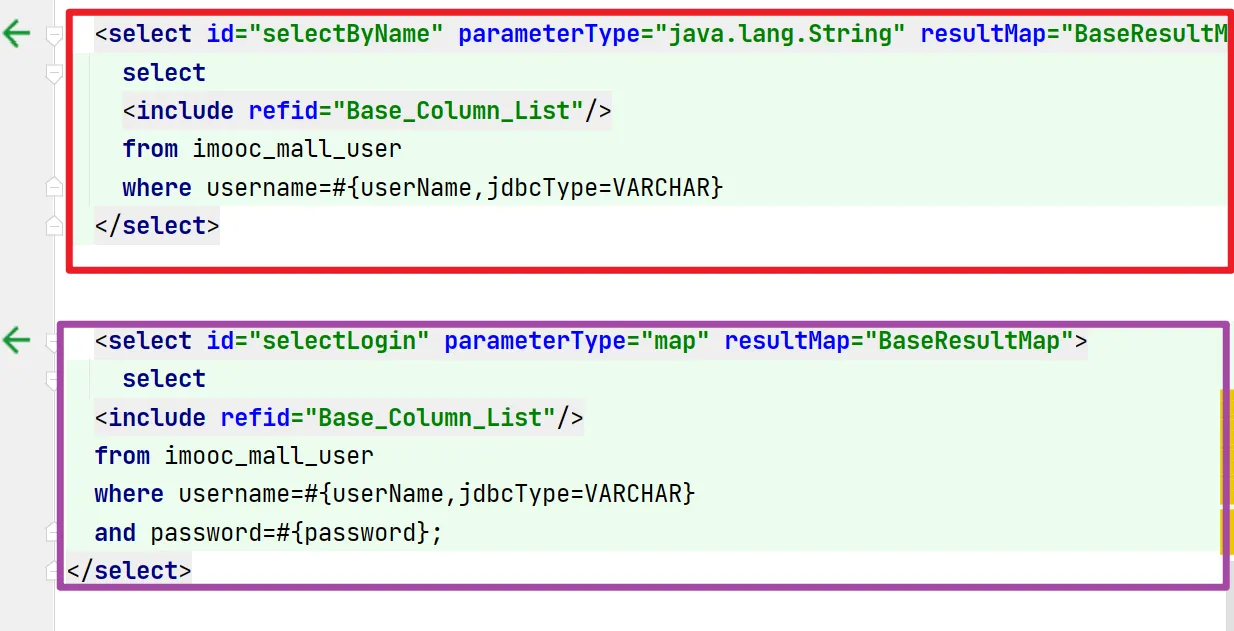 与此同时,对应的userMapper.xml里的对应文件也要提前复制出去