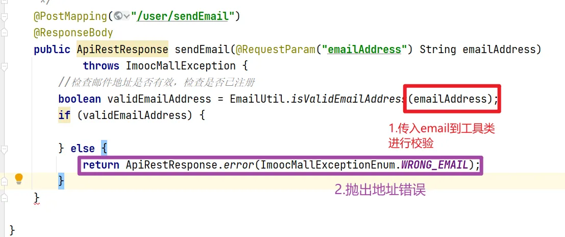 return ApiRestResponse.error(ImoocMallExceptionEnum.WRONG_EMAIL);