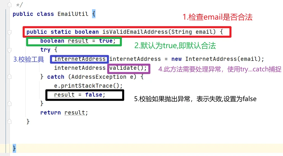 boolean validEmailAddress = EmailUtil.isValidEmailAddress(emailAddress);