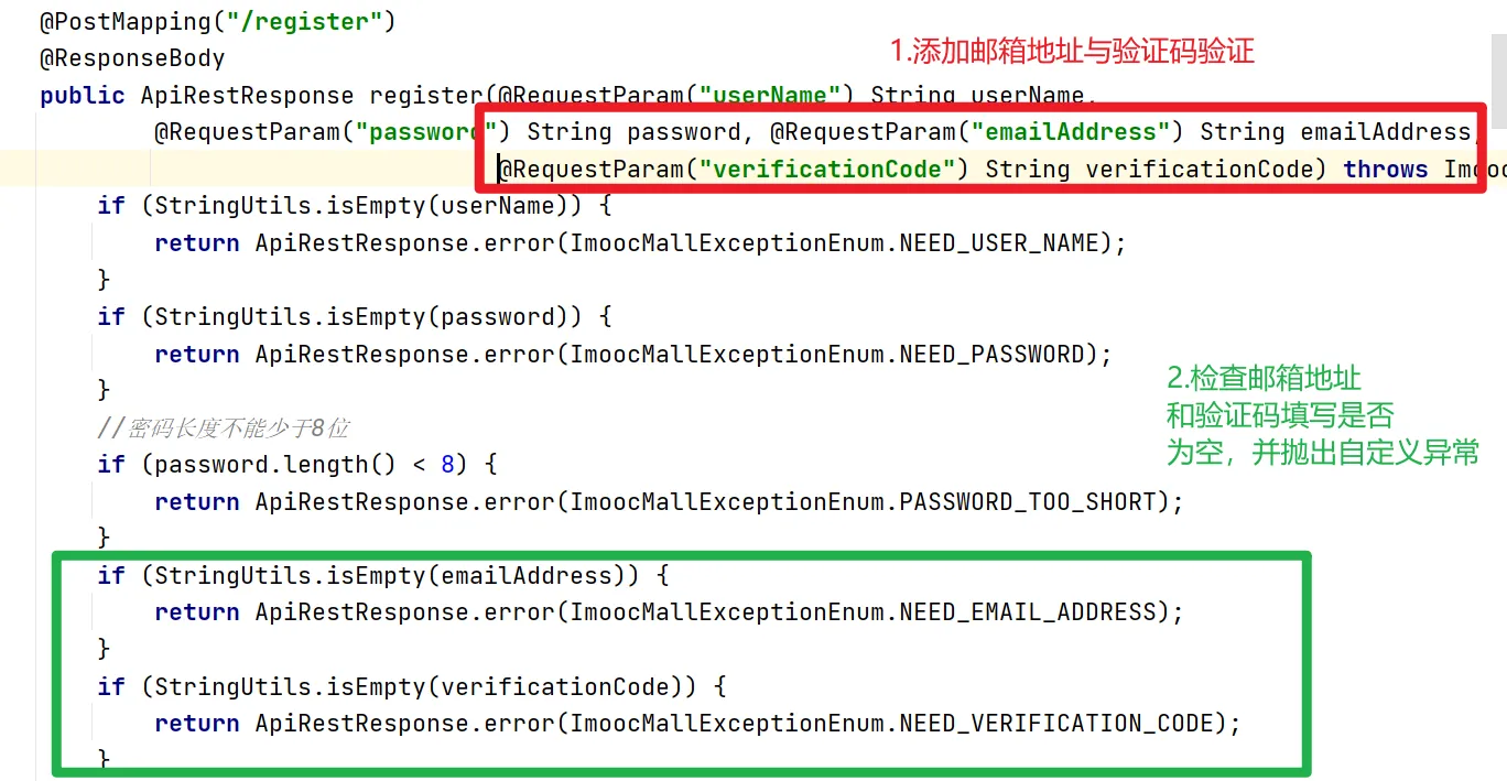 @RequestParam("verificationCode") String verificationCode) throws ImoocMallException {
