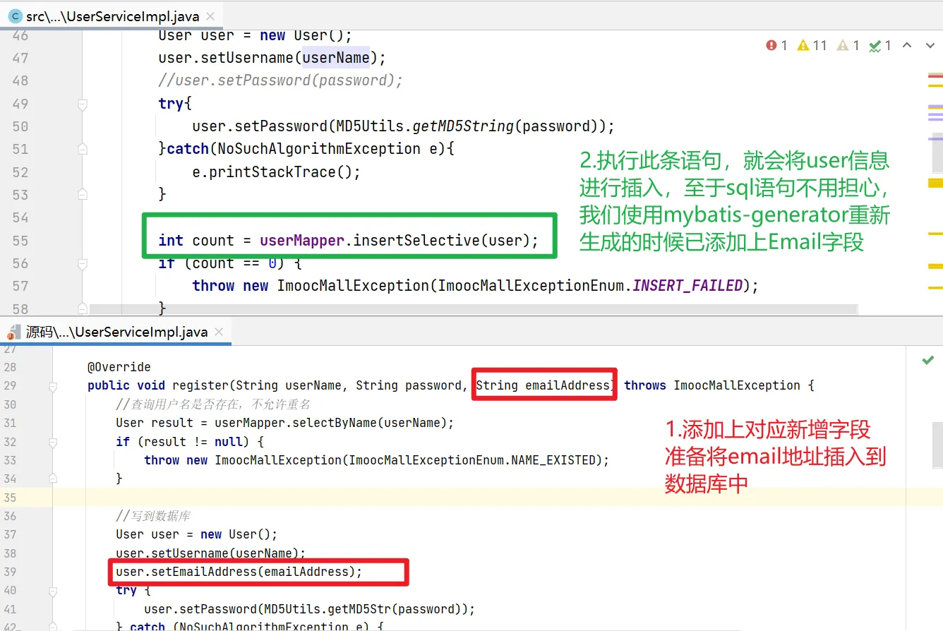 说明: 记得接口也要加上字段 UserService.java接口文件: