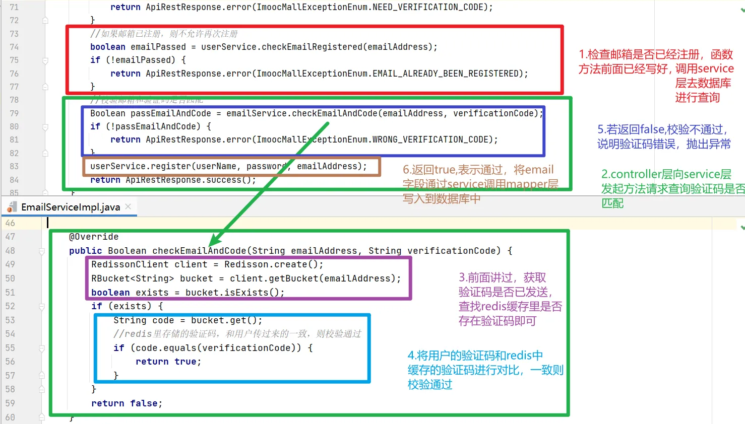 Boolean passEmailAndCode = emailService.checkEmailAndCode(emailAddress, verificationCode);
