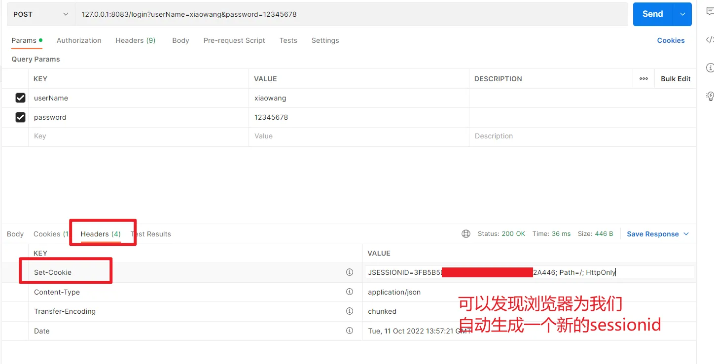 来看一下postman中究竟是这个流程如何执行的,这个生成的 sessionid 究竟长什么样,以及服务器和客户端之间是怎么做这个set-cookie这个交互的。