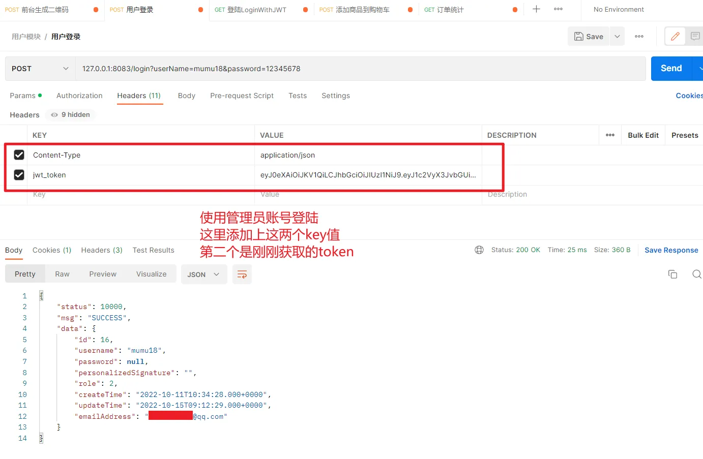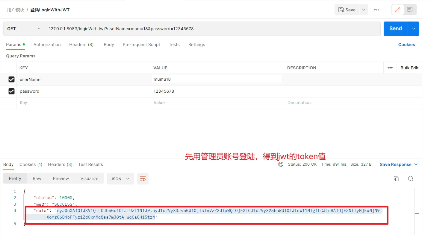 破案了,登陆账号时需要在headers添加上JWT,要不然查询时还是会提醒你需要登陆。。。