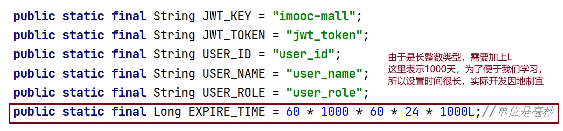 public static final Long EXPIRE_TIME = 60 * 1000 * 60 * 24 * 1000L;//单位是毫秒