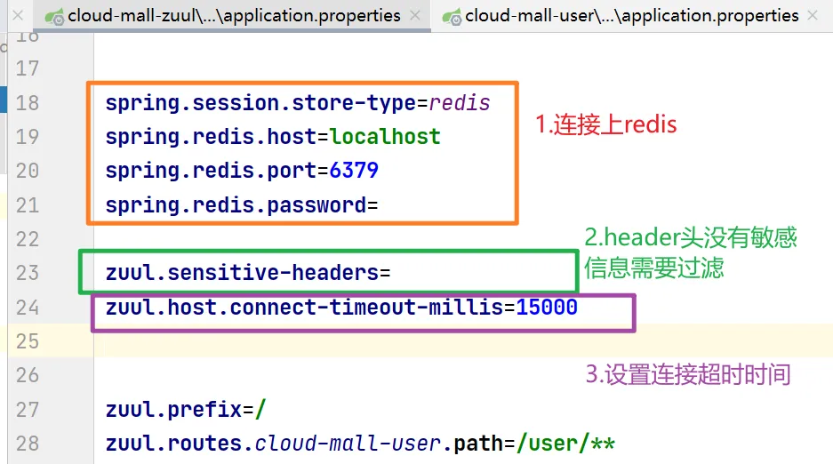 配置:sensitiveHeaders:(英文不好害死人。)网上查了很多zuul的session共享问题,都说设置sensitiveHeaders属性,还有列出源码的,经过分析和度娘翻译, sensitive(敏感的),加上源码注释,可以知道,zuul默认情况下的sensitiveHeaders(敏感头),包含”Cookie”/”Set-Cookie”/”Authorization”三个头,分别 是cookie、权限头部分,zuul认为这些头是敏感的,默认不会再路由中携带,如果我们是内部服务路由,就可以覆盖sensitiveHeaders,指定其他值覆盖掉,让其 可以将cookie传到下一路由处,即可。