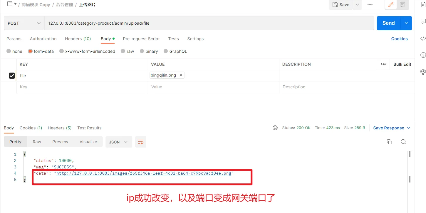 而且这里8083才是网关,8082是商品模块端口,我搞混了两个端口。我们需要将图片接口的端口从商品改为网关的。。。