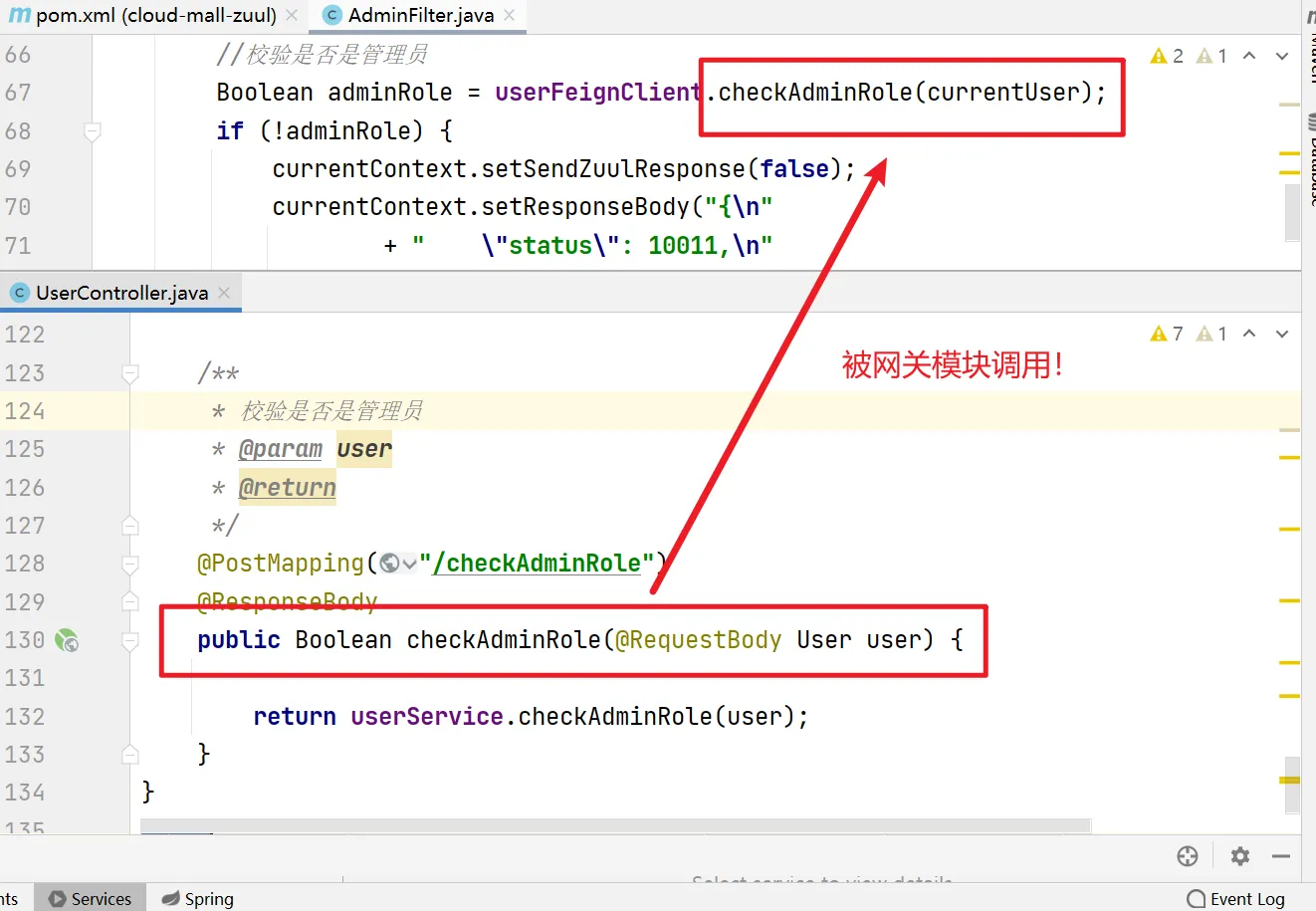 }说明: 这里调用了用户模块的方法。。。