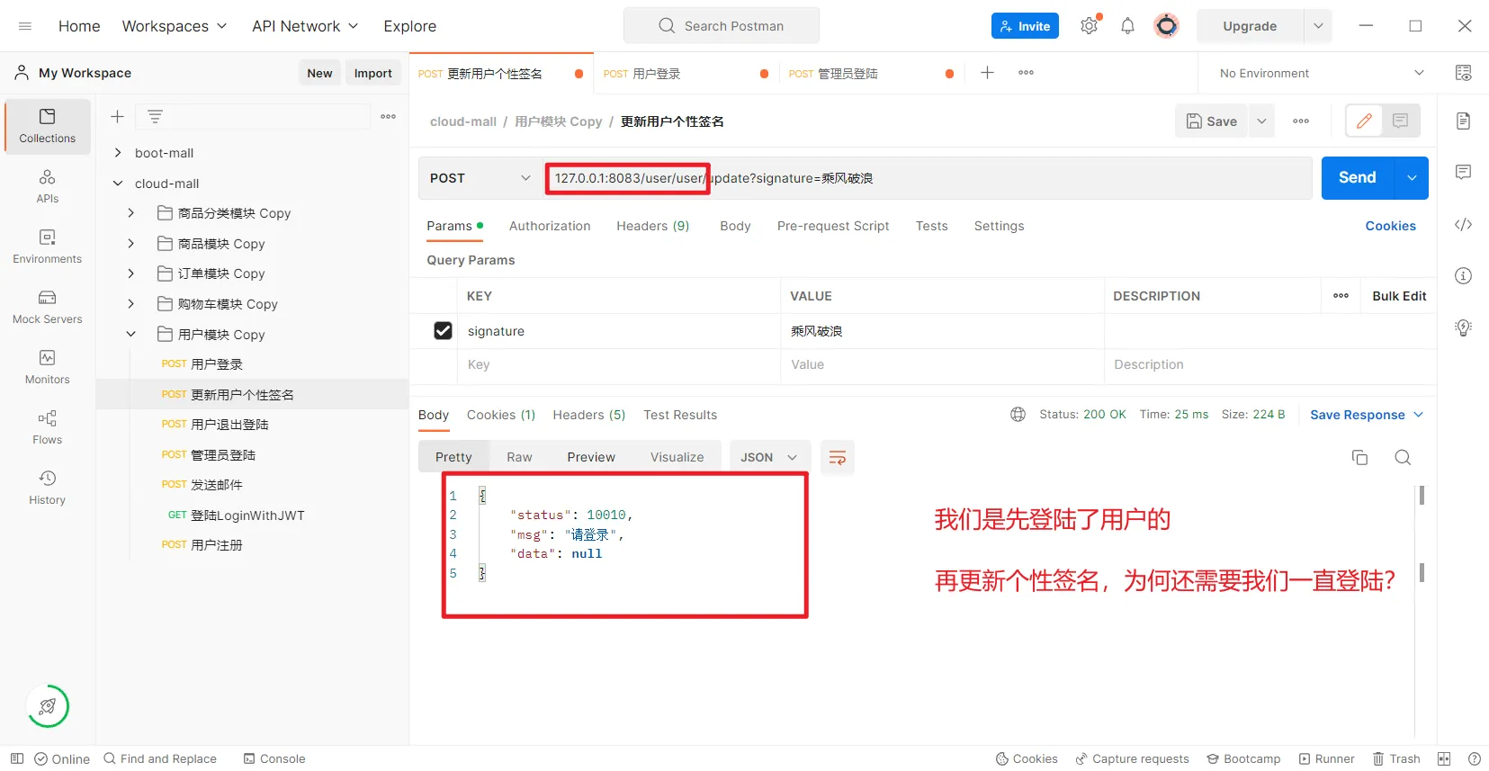 测试登陆后的功能,比如更新个性签名
