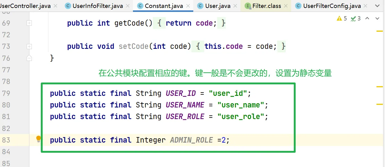 * 描述: User过滤器的配置